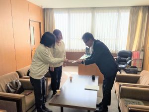 10月29日(水)中央公民館にて、兼松智秋さん、金森美鈴さんが全国大会に出場することを教育長に報告しました。兼松さん、金森さんは、11月1日(土)に三重県の伊勢体育館で開催された「2025 GRACE CUP LEAGUE in 伊勢」へ出場しました。
