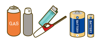 もえないごみ(金物)へ、電池は回収ボックスへ |