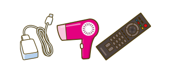 リモコン、電動歯ブラシ、ドライヤー、コード類